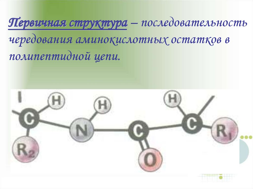 Первичная структура – последовательностьчередования аминокислотных остатков в