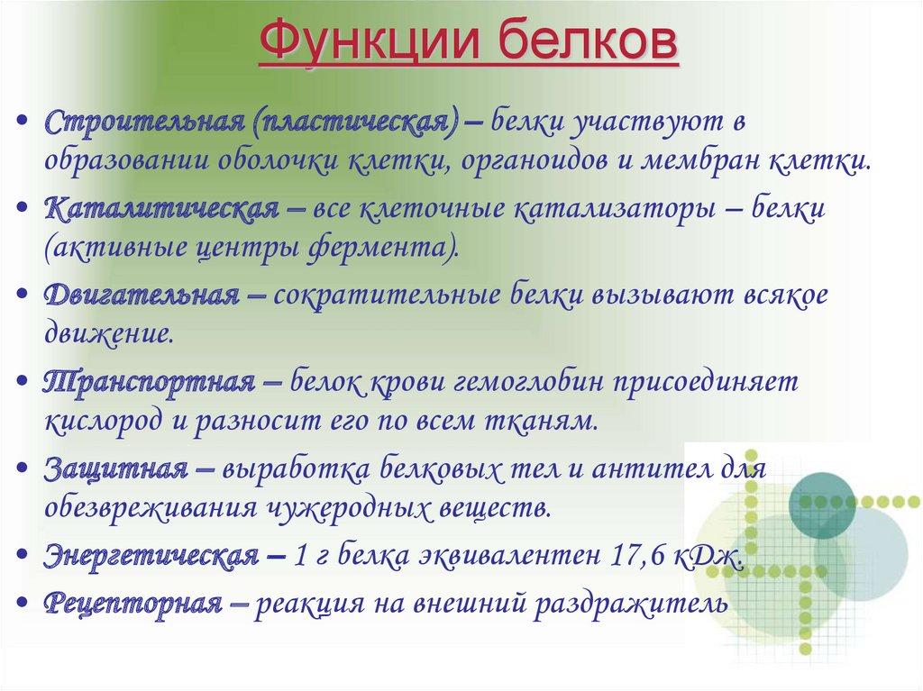 Функции белков• Строительная (пластическая) – белки участвуют в