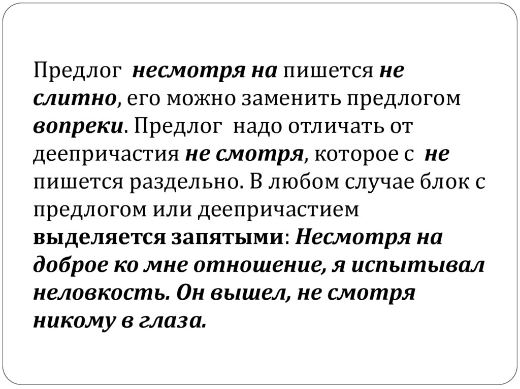 Предлог несмотря на пишется неслитно, его можно заменить предлогом