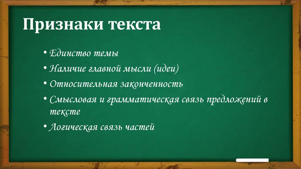 Признаки текста• Единство темы