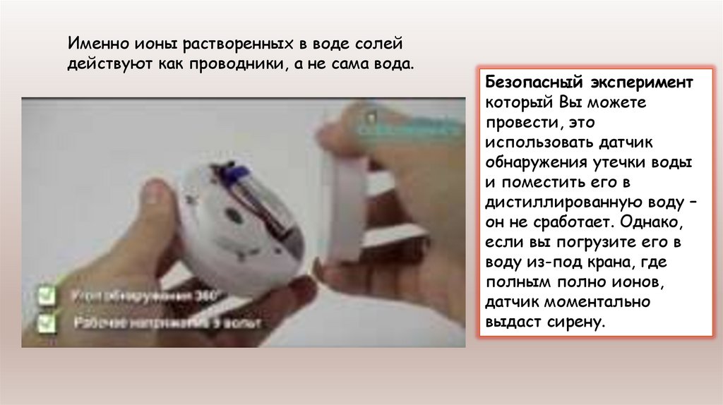 Именно ионы растворенных в воде солейдействуют как проводники, а не сама вода.