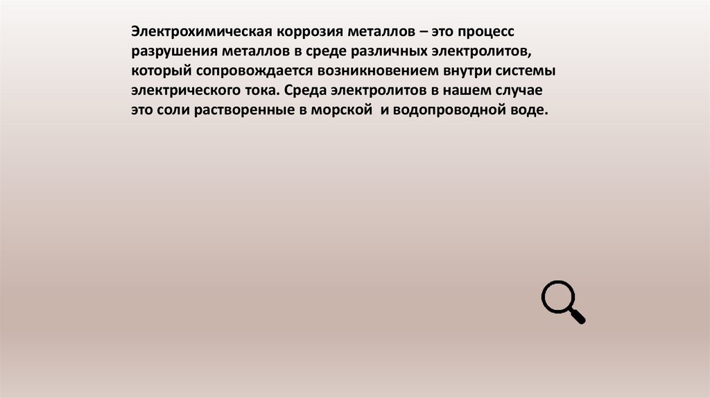 Электрохимическая коррозия металлов – это процессразрушения металлов в среде различных электролитов,