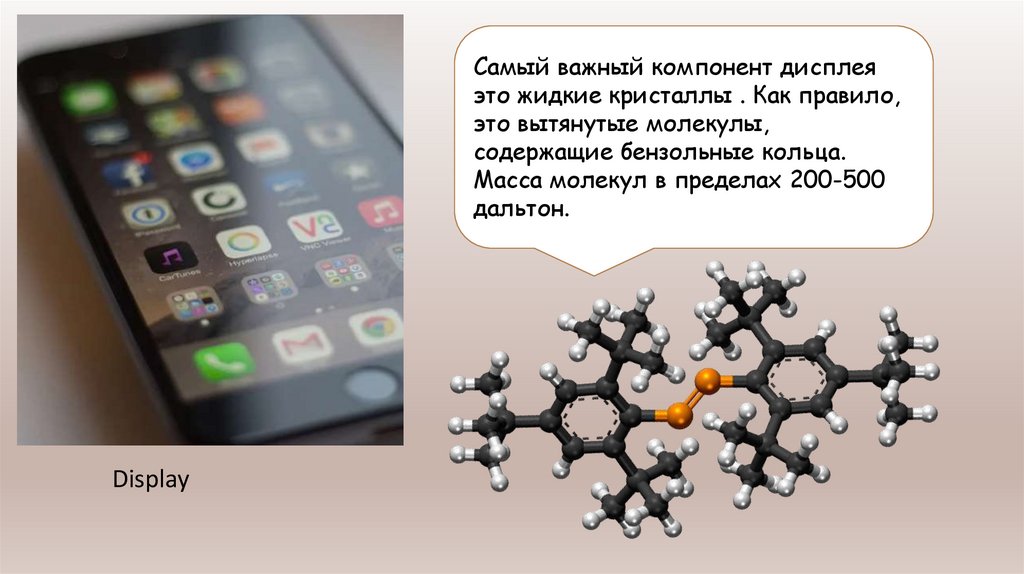 Самый важный компонент дисплеяэто жидкие кристаллы . Как правило,