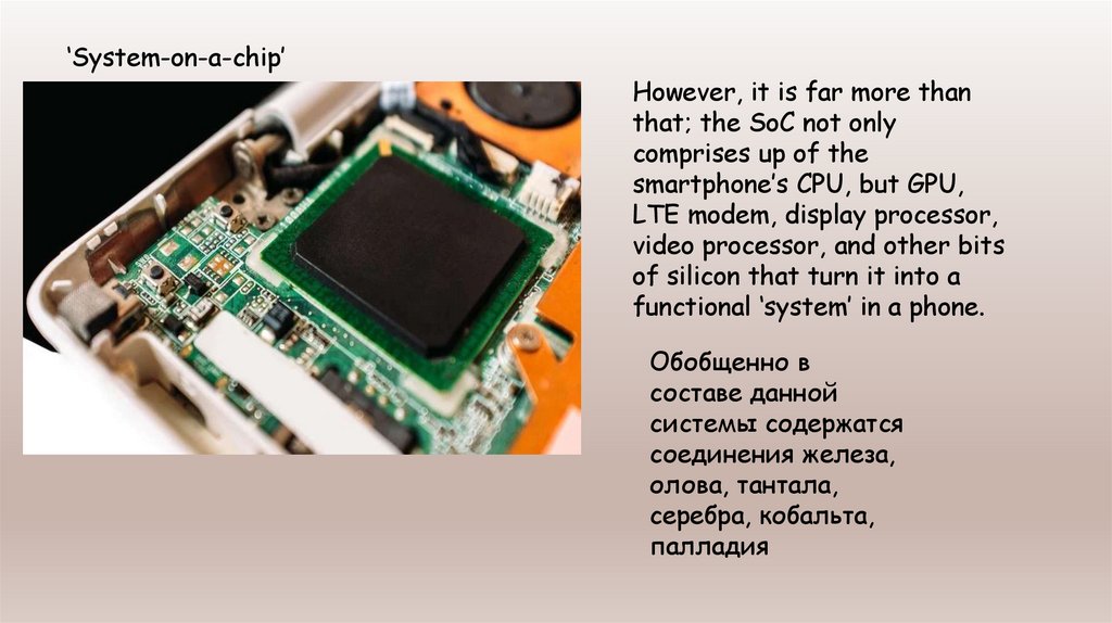 металлов. В частности: System-on-achip, Modem, Display и т.д