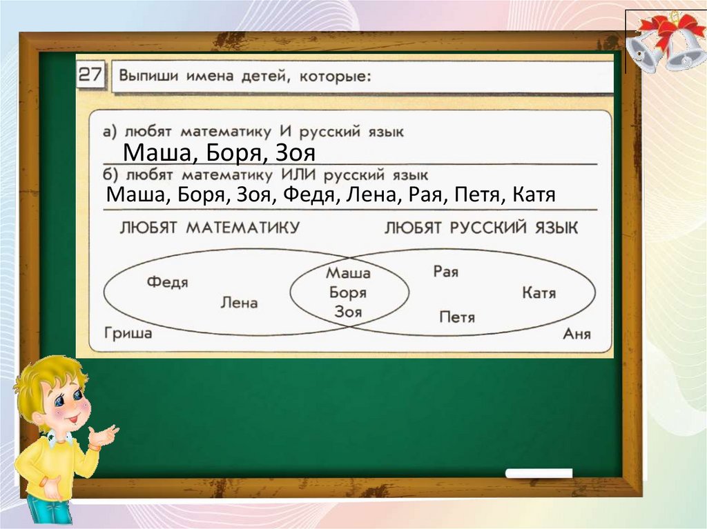 Маша, Боря, ЗояМаша, Боря, Зоя, Федя, Лена, Рая, Петя, Катя