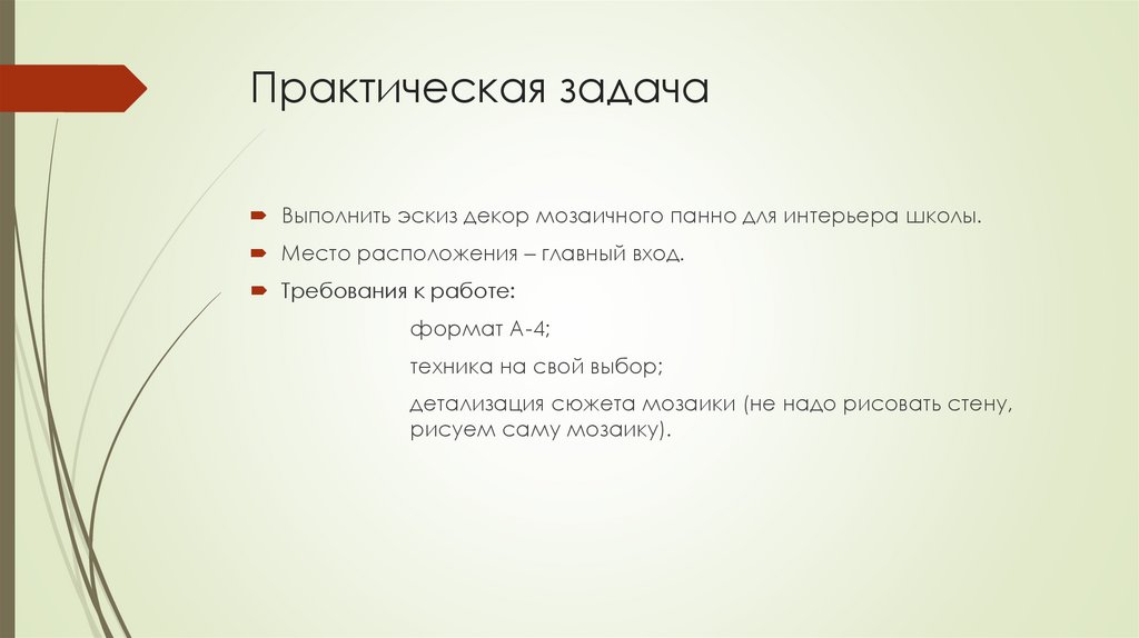 Практическая задачаВыполнить эскиз декор мозаичного панно для интерьера школы.