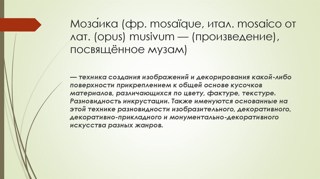 производства. В настоящее время под мозаикой