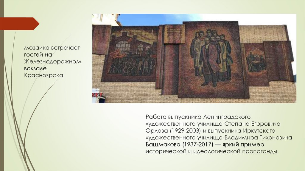 Предлагаю познакомиться спроизведениями монументальнодекоративного искусства Красноярска.