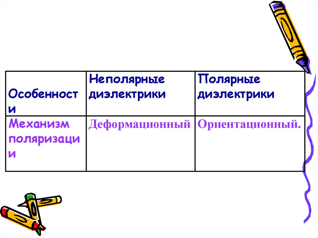 Особенности Неполярныедиэлектрики