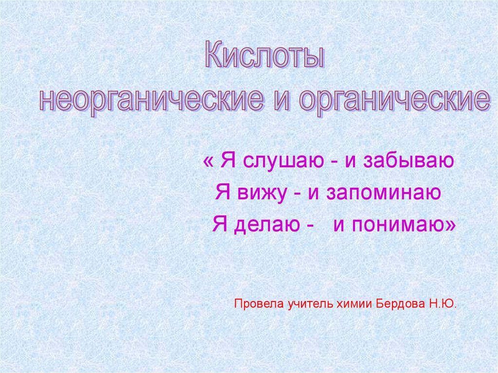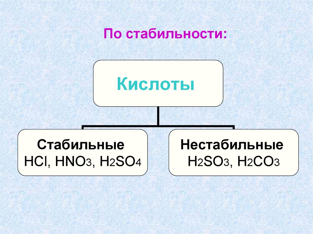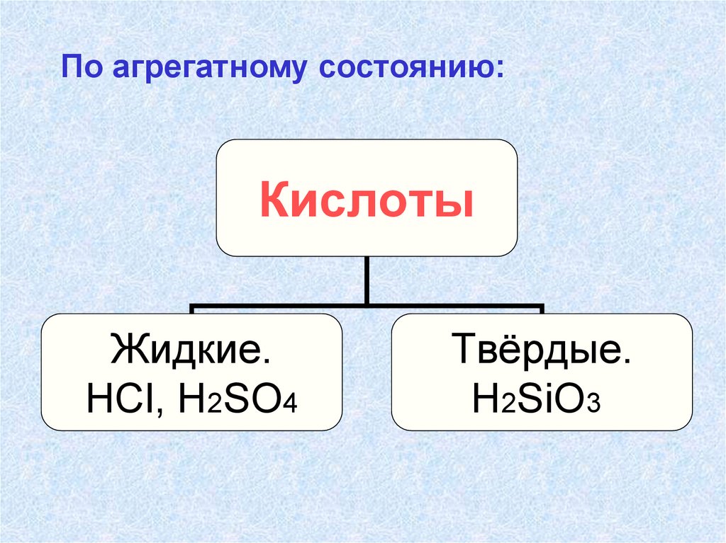 Кислоты сложные вещества состоящиеиз атомов водорода и кислотного остатка.