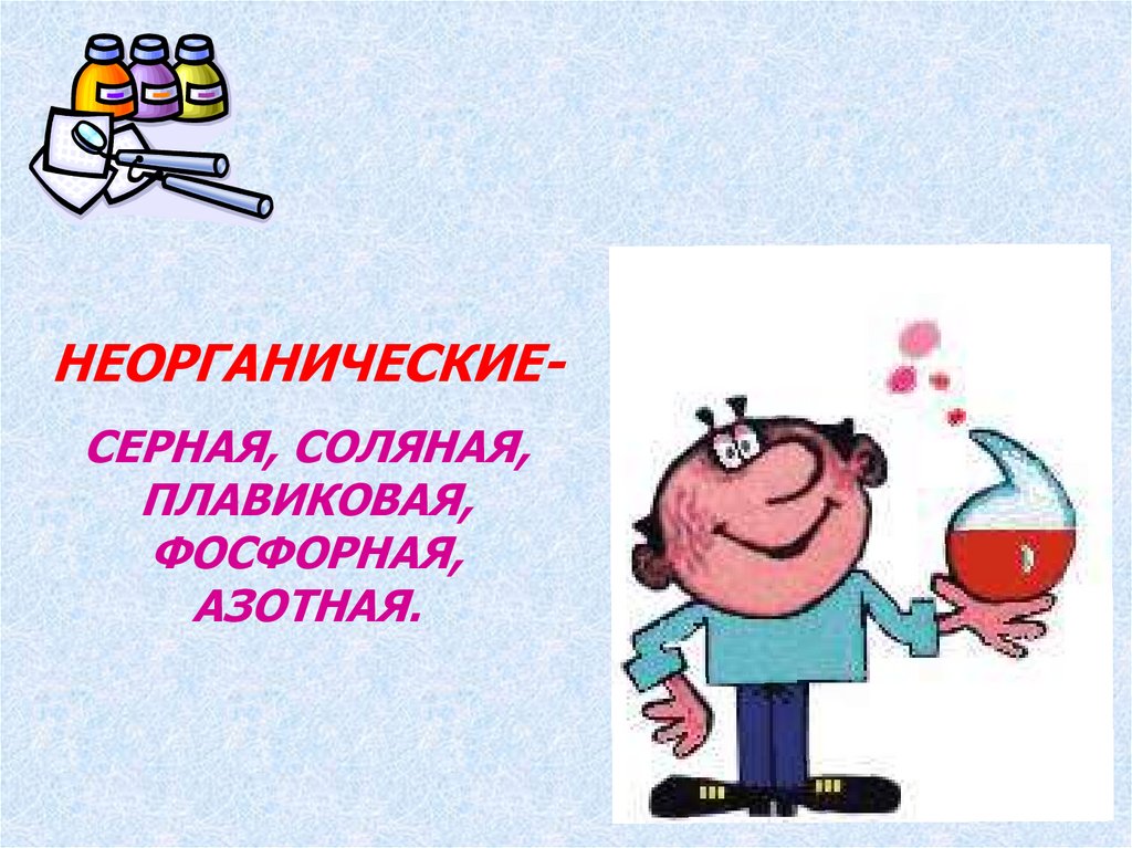 НЕОРГАНИЧЕСКИЕСЕРНАЯ, СОЛЯНАЯ,ПЛАВИКОВАЯ,