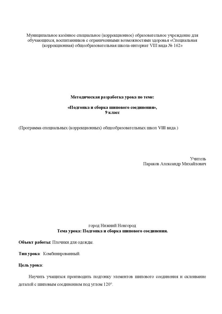 «Подгонка и сборка шипового соединения»,