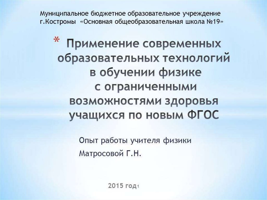 Применение современных образовательных технологий в обучении физике с ограниченными возможностями здоровья учащихся