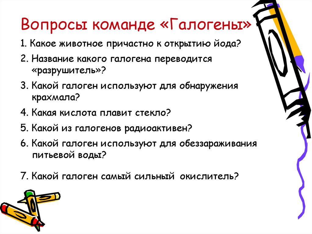 Вопросы команде «Галогены»1. Какое животное причастно к открытию йода?