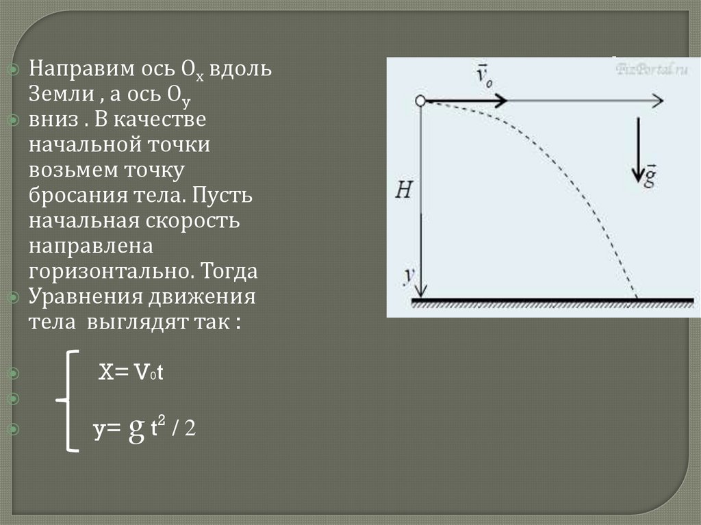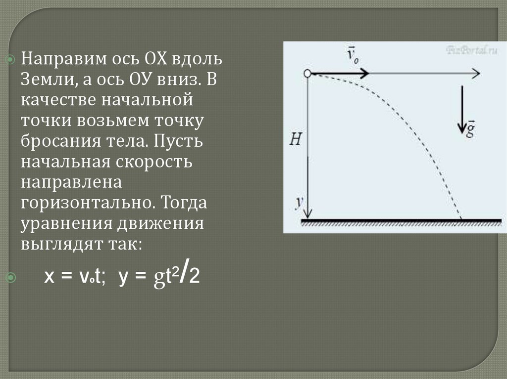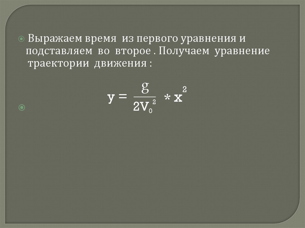 х = vºt; у = gt2 2