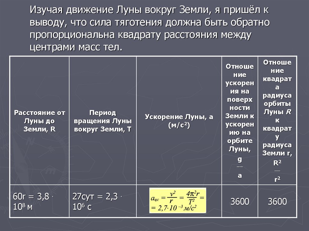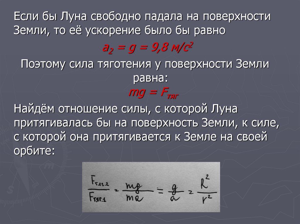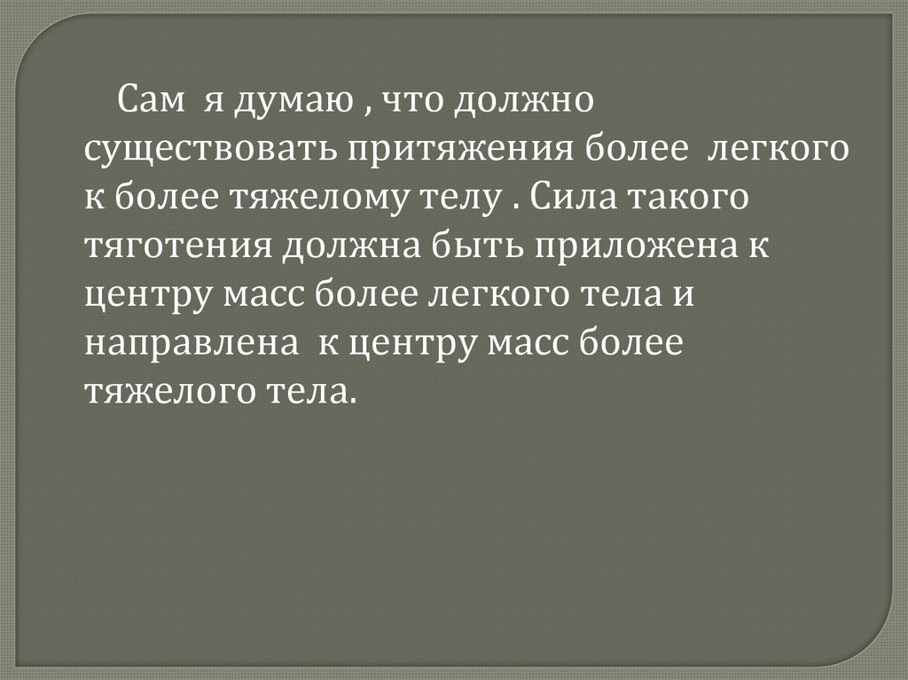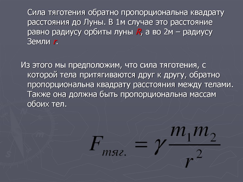 Из этого мы предположим, что сила тяготения, с