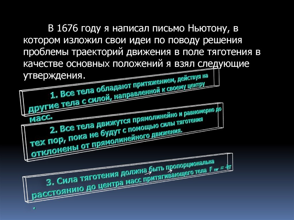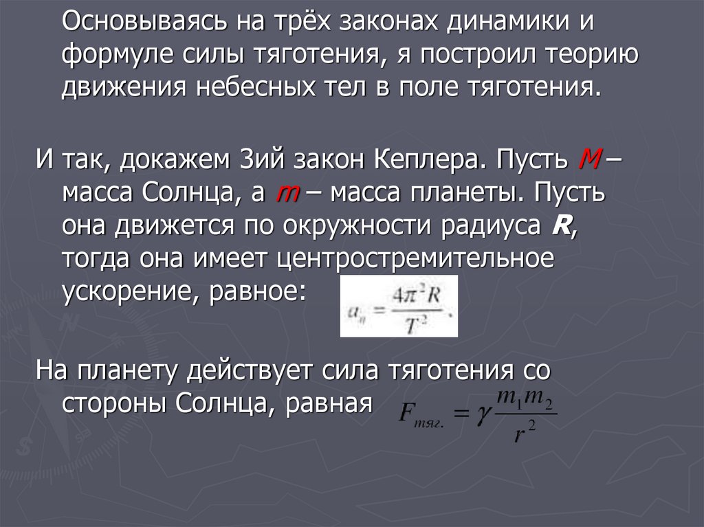 Основываясь на трёх законах динамики иформуле силы тяготения, я построил теорию