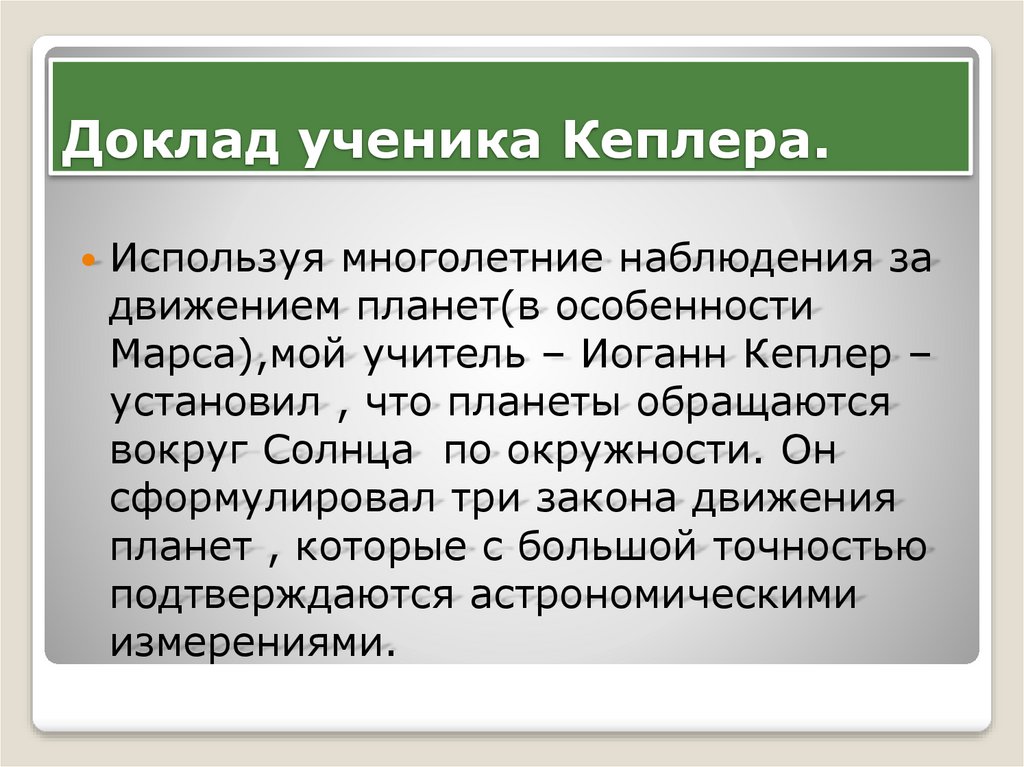 Кеплер утверждал, чтопланеты движутся вокруг