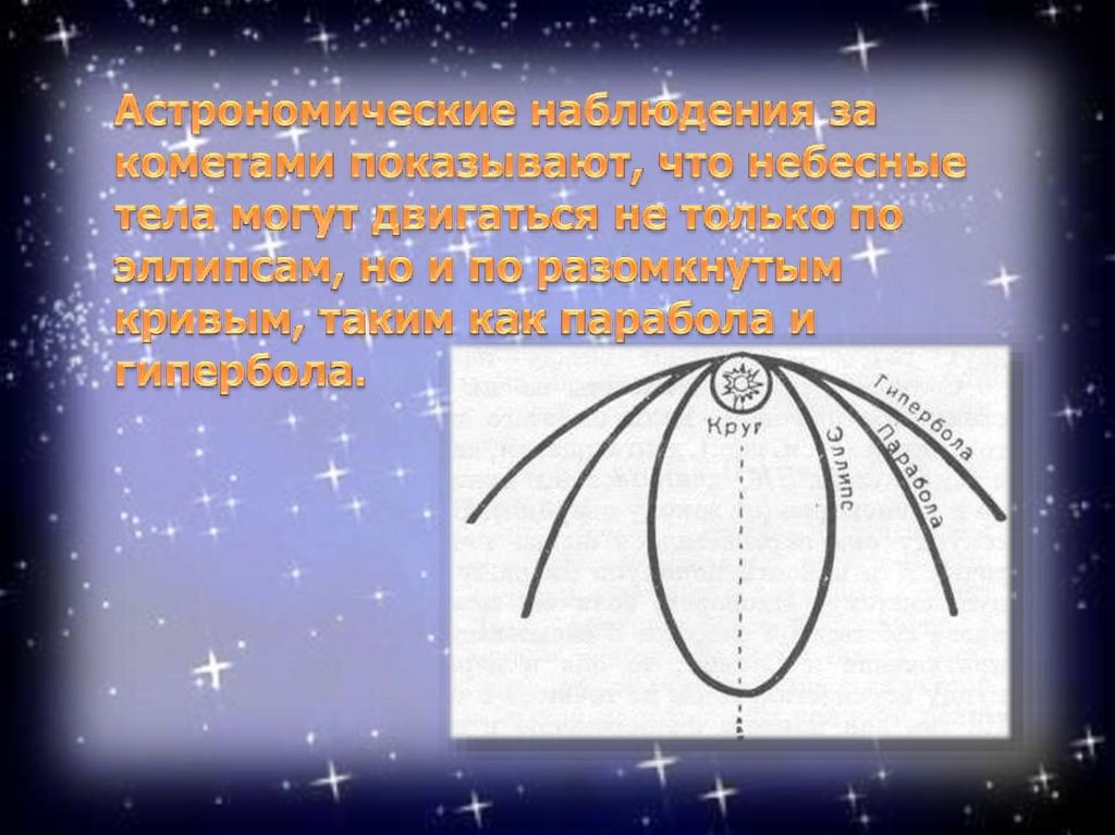 движения небесных тел в поле тяготения.