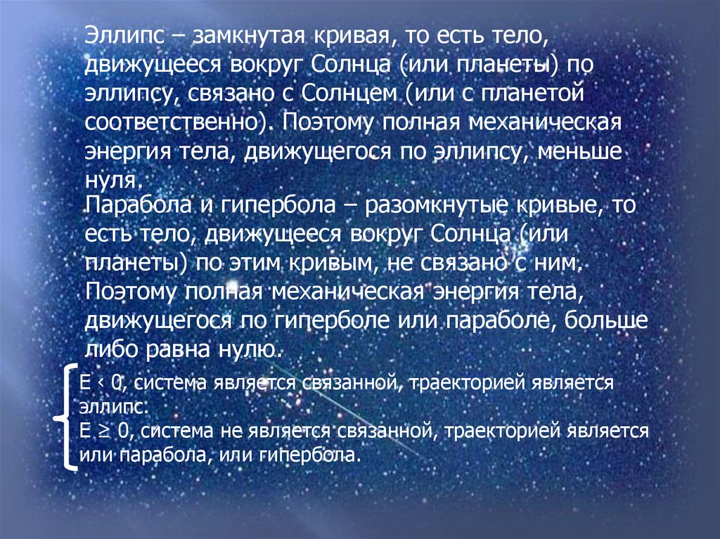 планеты. При этом полная механическая энергия тела