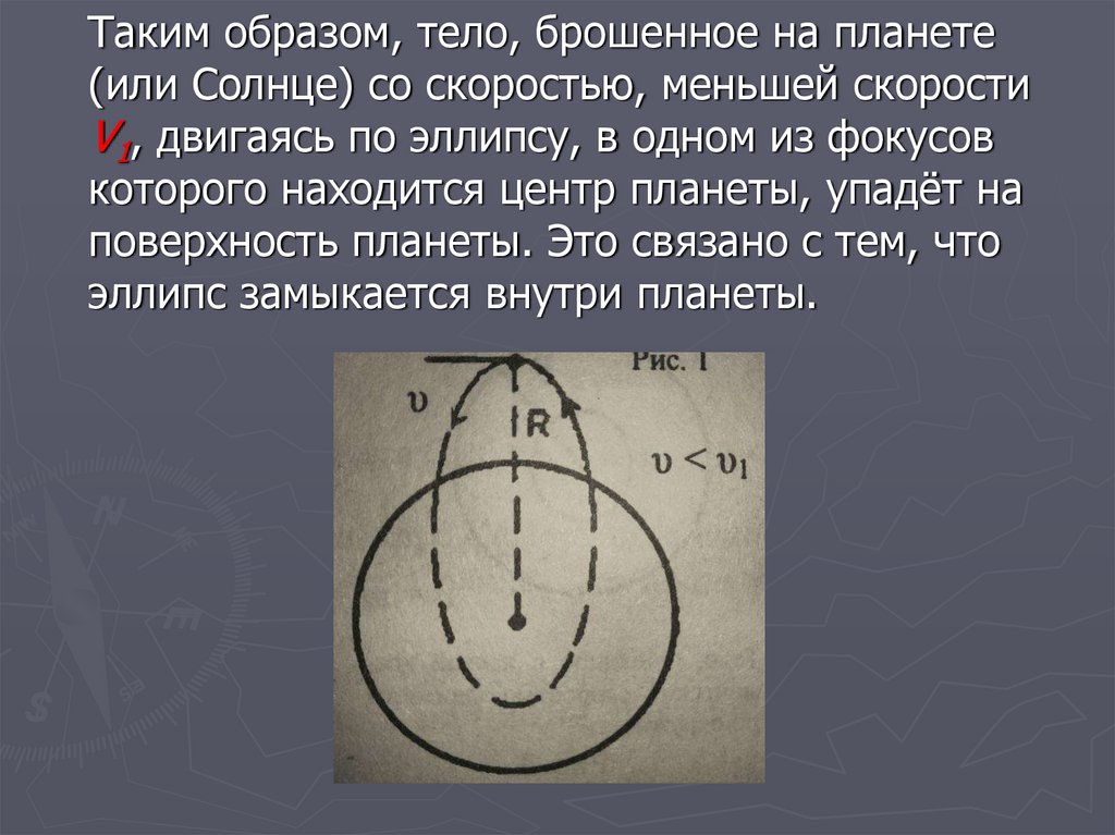 Таким образом, тело, брошенное на планете(или Солнце) со скоростью, меньшей скорости