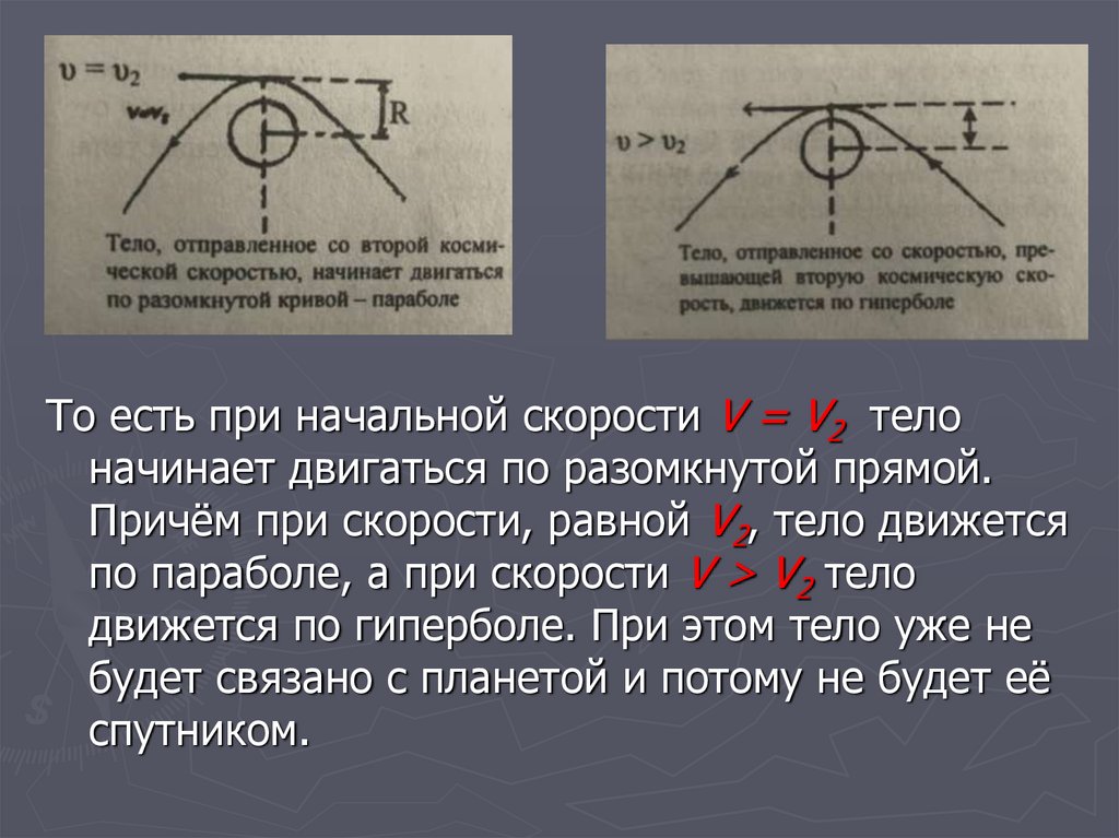 То есть при начальной скорости V = V2 телоначинает двигаться по разомкнутой прямой.