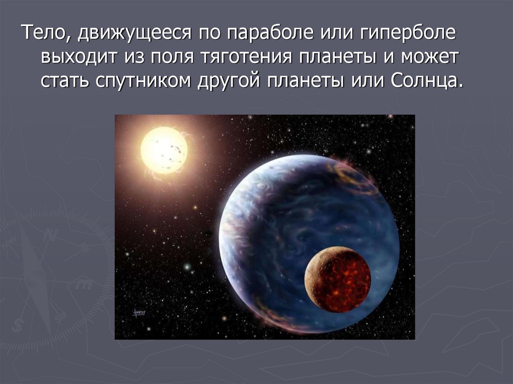 Тело, движущееся по параболе или гиперболевыходит из поля тяготения планеты и может