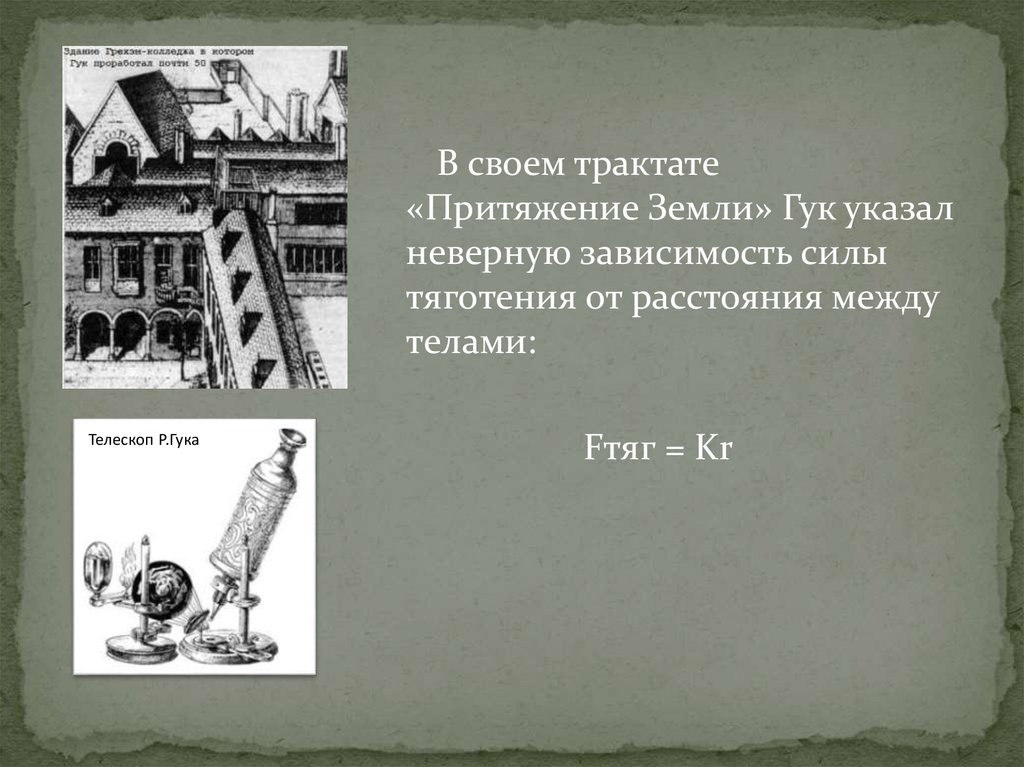 В своем трактате«Притяжение Земли» Гук указал