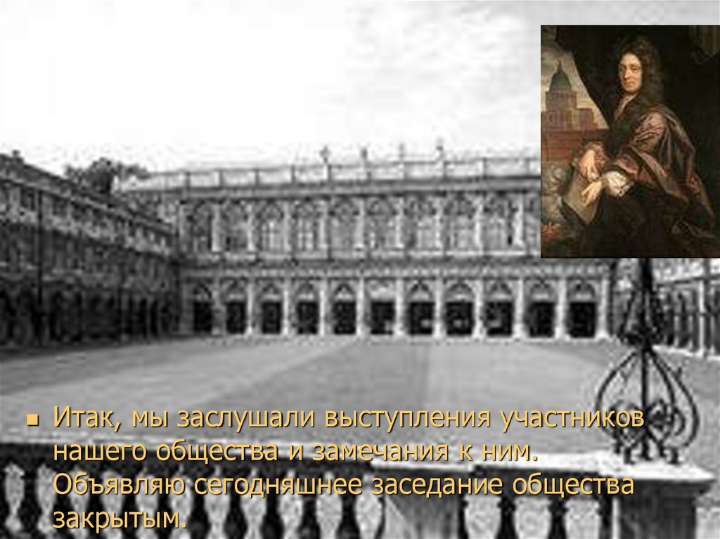 Объявляю сегодняшнее заседание общества