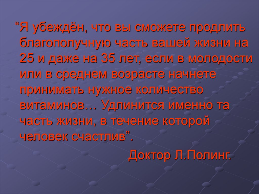 “Я убеждён, что вы сможете продлитьблагополучную часть вашей жизни на
