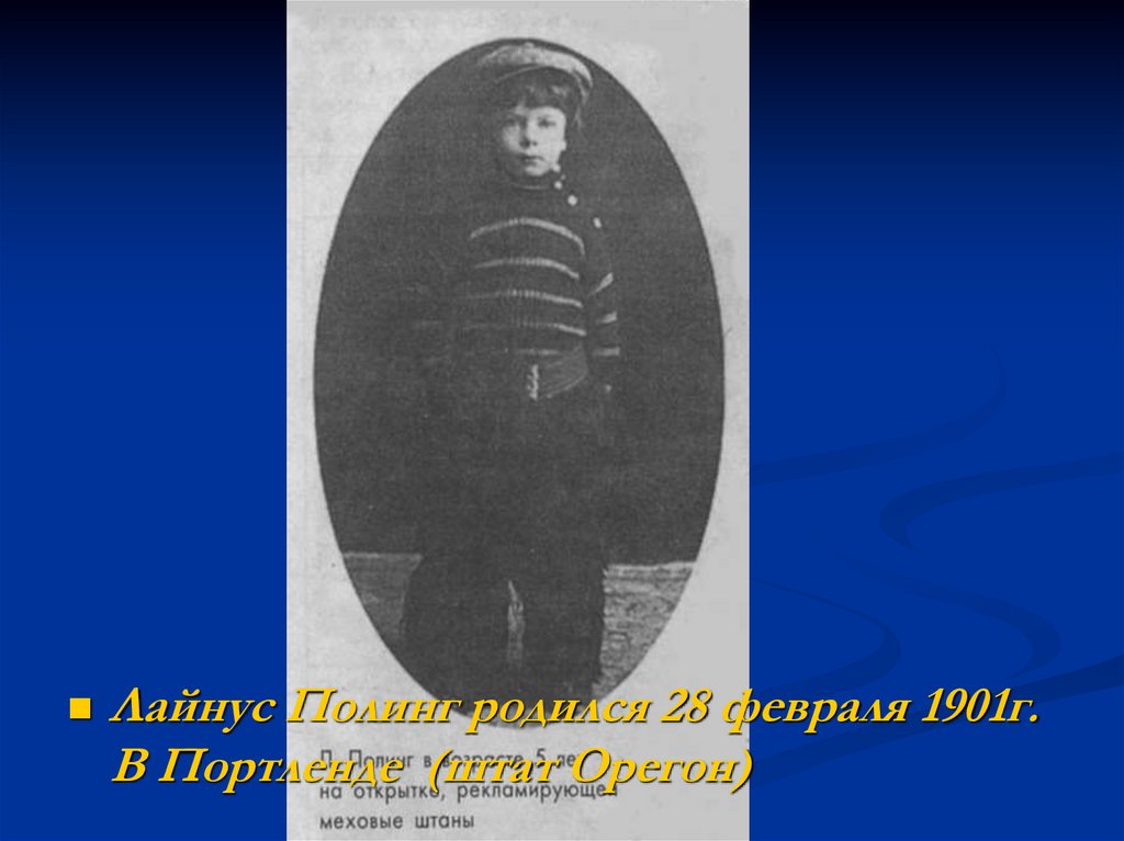 Лайнус Полинг родился 28 февраля 1901г.В Портленде (штат Орегон)