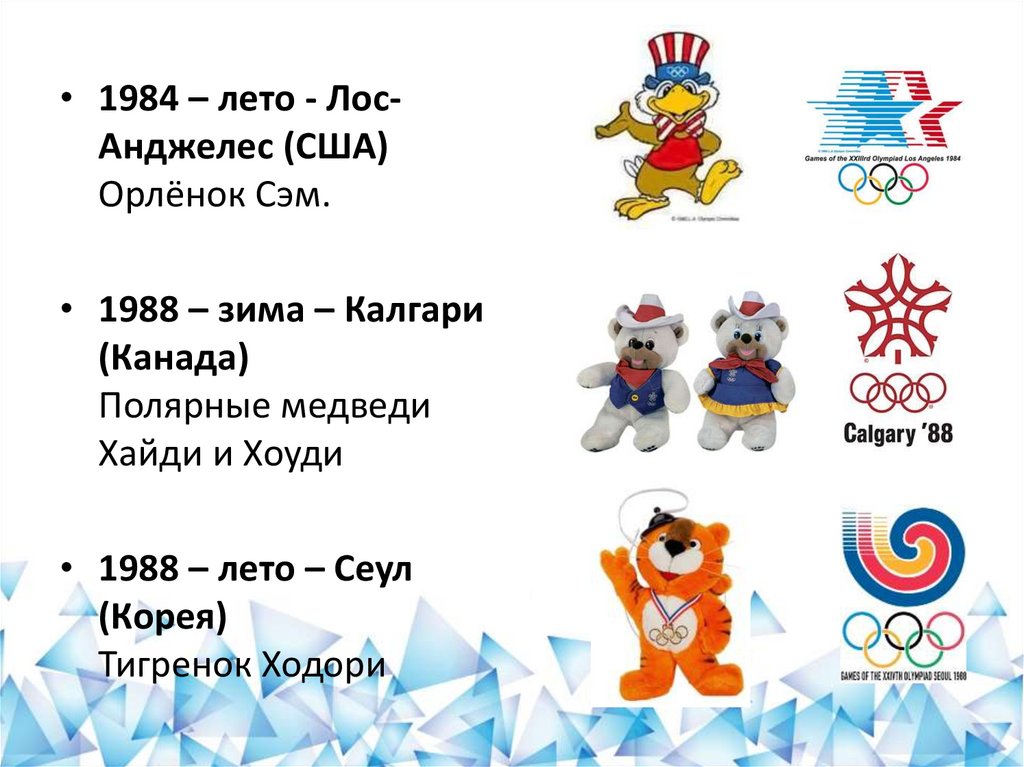 • 1984 – лето - ЛосАнджелес (США)Орлёнок Сэм.