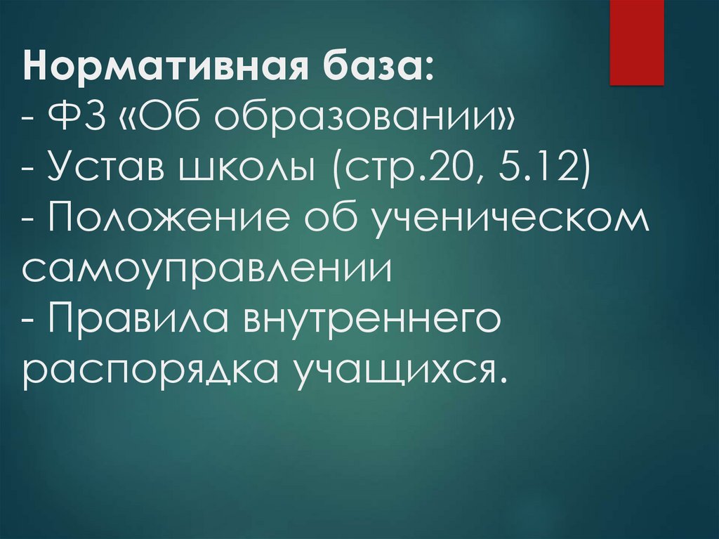Нормативная база:- ФЗ «Об образовании»
