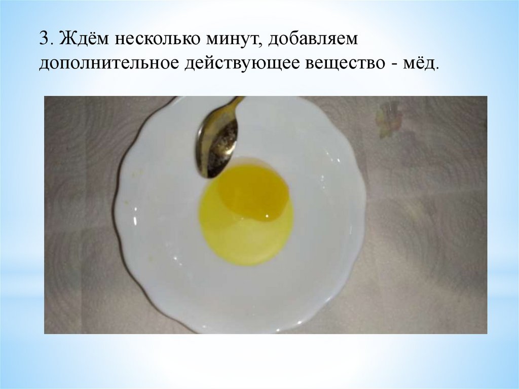 3. Ждём несколько минут, добавляемдополнительное действующее вещество - мёд.