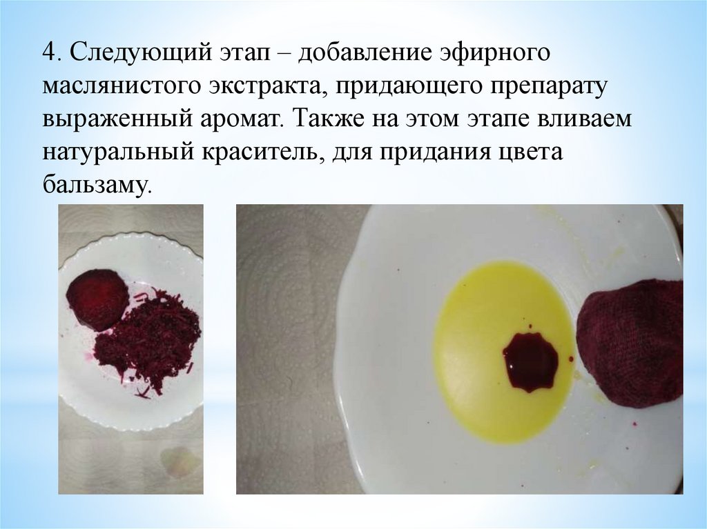 4. Следующий этап – добавление эфирногомаслянистого экстракта, придающего препарату