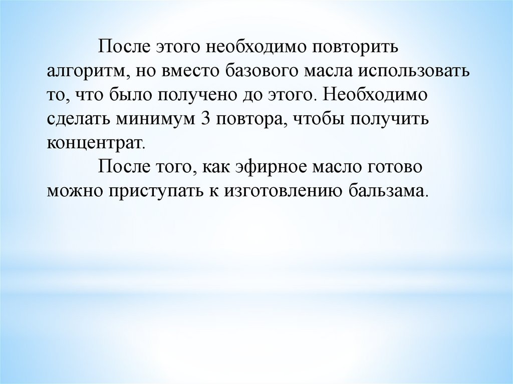 После этого необходимо повторитьалгоритм, но вместо базового масла использовать