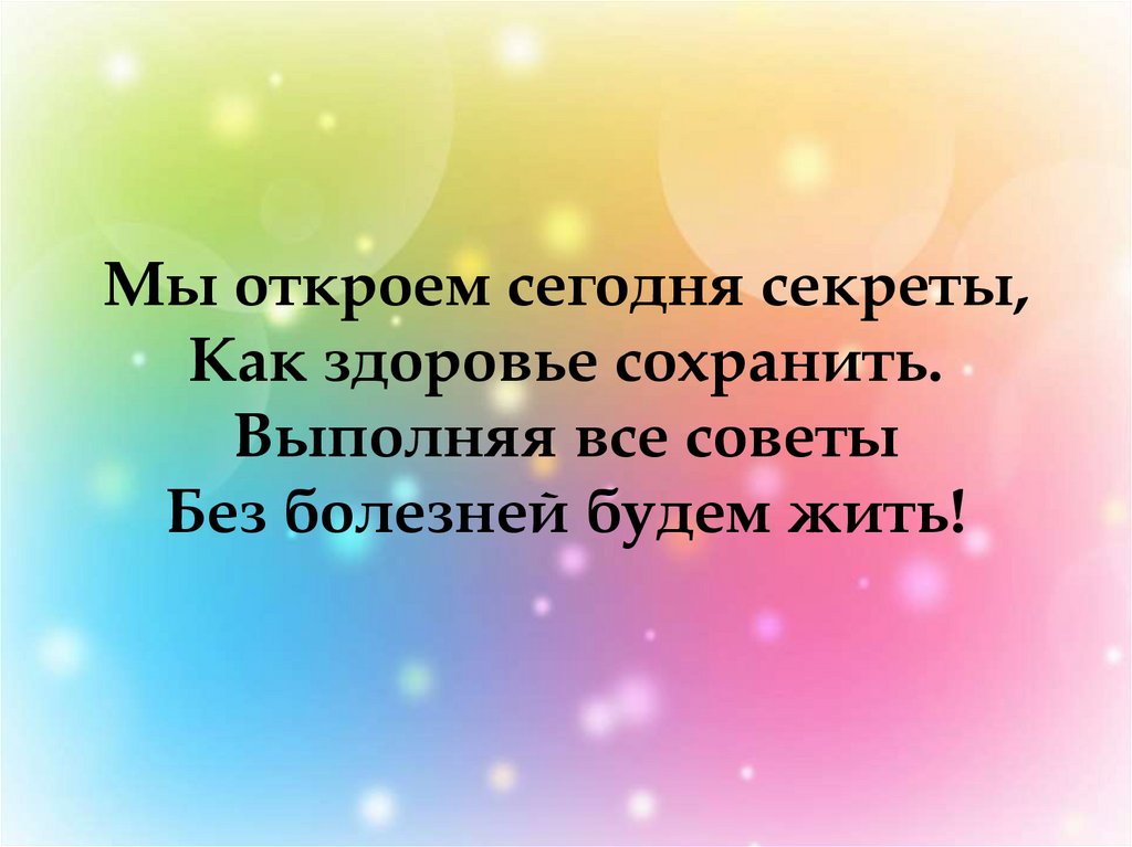 Мы откроем сегодня секреты,Как здоровье сохранить.