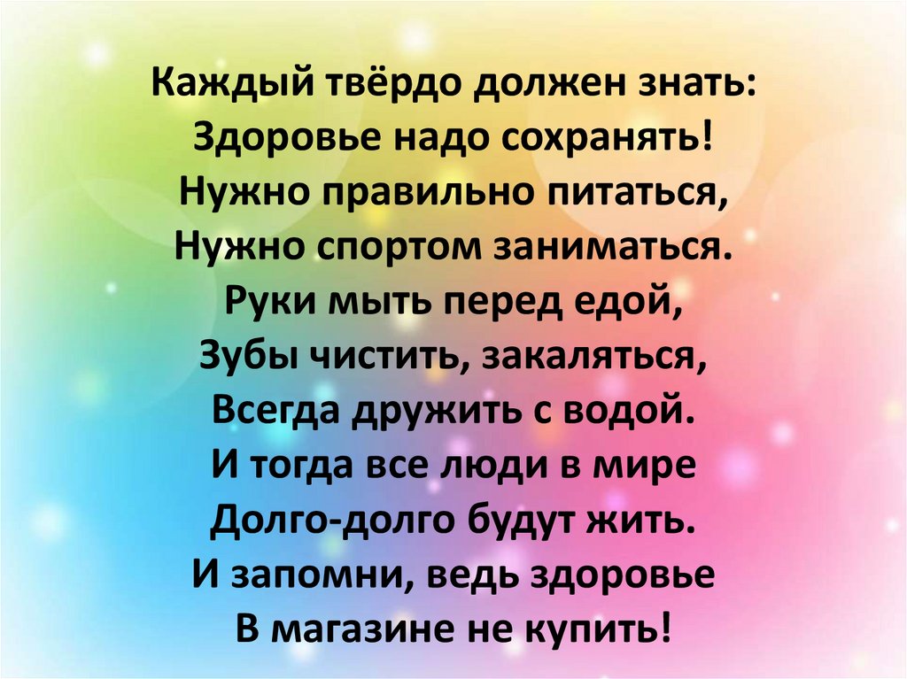 Каждый твёрдо должен знать:Здоровье надо сохранять!