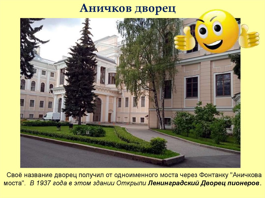 моста". В 1937 года в этом здании Открыли Ленинградский Дворец пионеров.