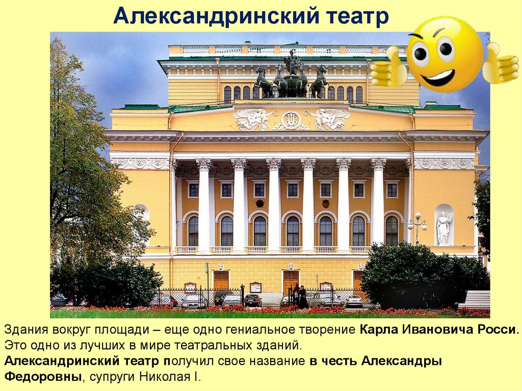 Александринский театрЗдания вокруг площади – еще одно гениальное творение Карла Ивановича Росси.