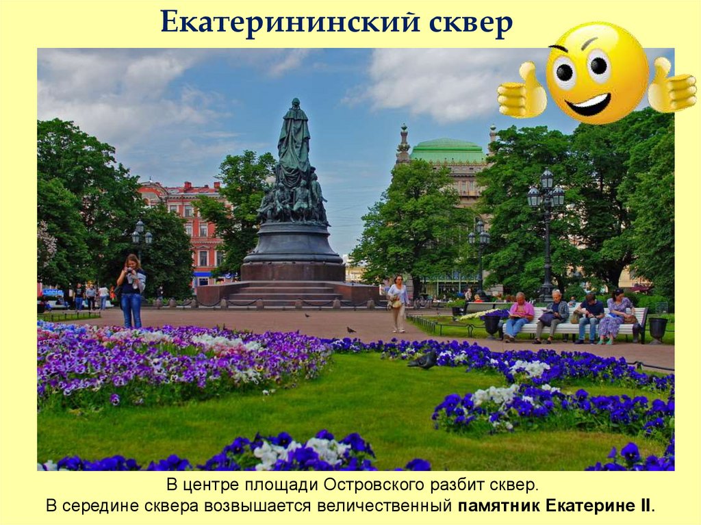 Екатерининский скверВ центре площади Островского разбит сквер.