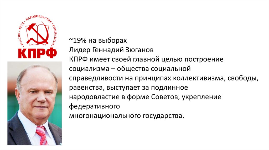 ~19% на выборахЛидер Геннадий Зюганов