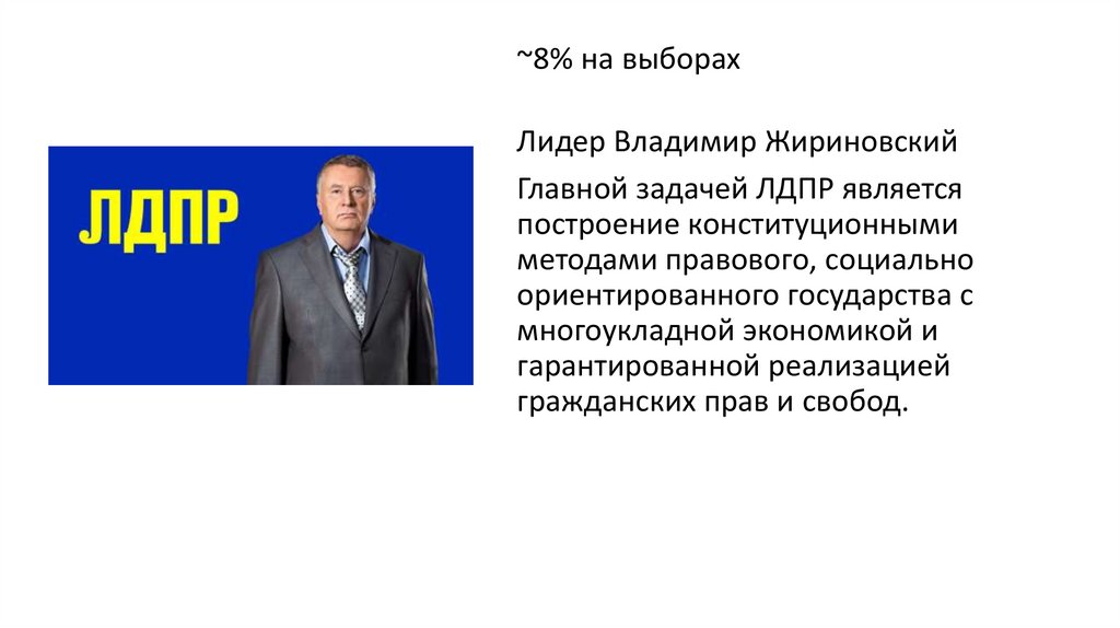 ~8% на выборахЛидер Владимир Жириновский