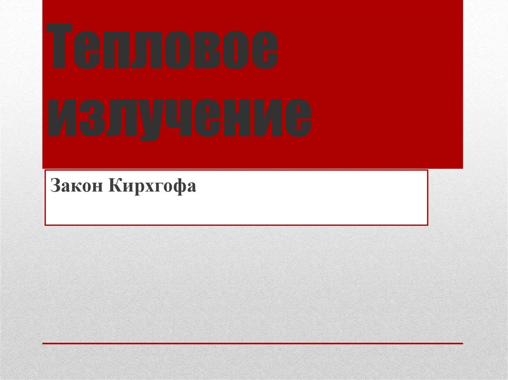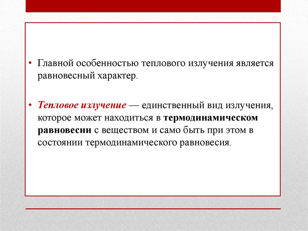 • Главной особенностью теплового излучения являетсяравновесный характер.