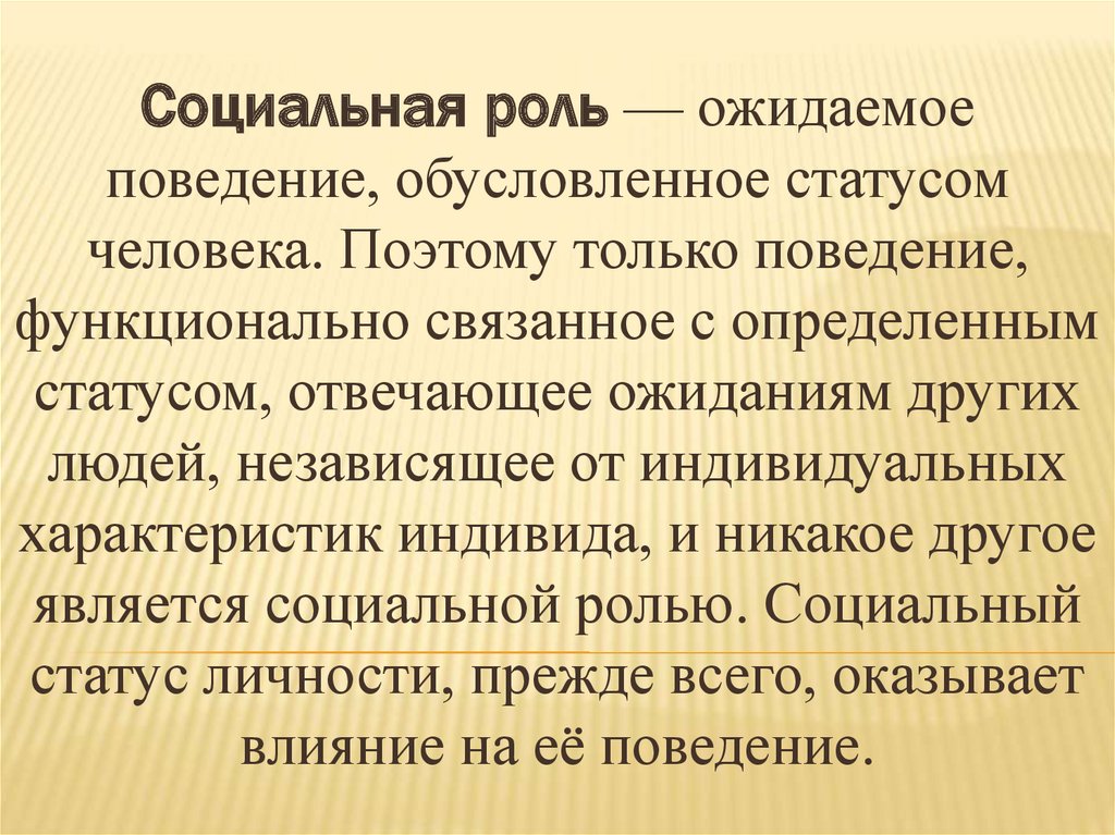 Социальная роль — ожидаемоеповедение, обусловленное статусом