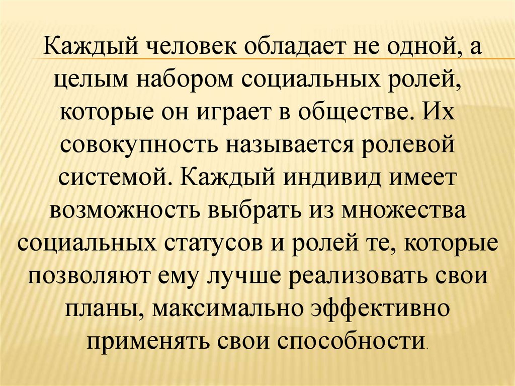 Каждый человек обладает не одной, ацелым набором социальных ролей,
