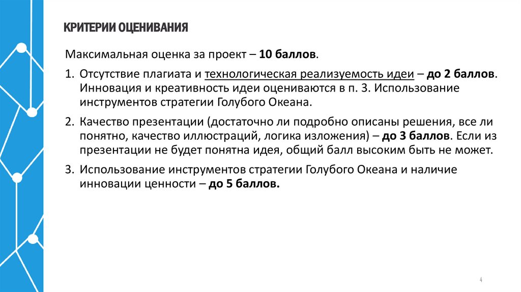 КРИТЕРИИ ОЦЕНИВАНИЯМаксимальная оценка за проект – 10 баллов.