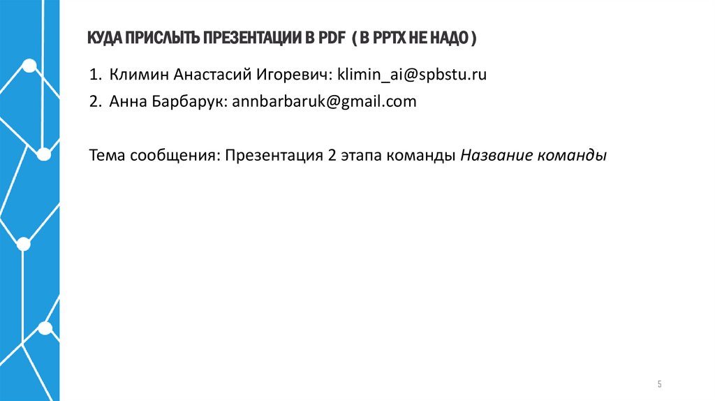 КУДА ПРИСЛЫТЬ ПРЕЗЕНТАЦИИ В PDF ( В PPTX НЕ НАДО )1. Климин Анастасий Игоревич: klimin_ai@spbstu.ru