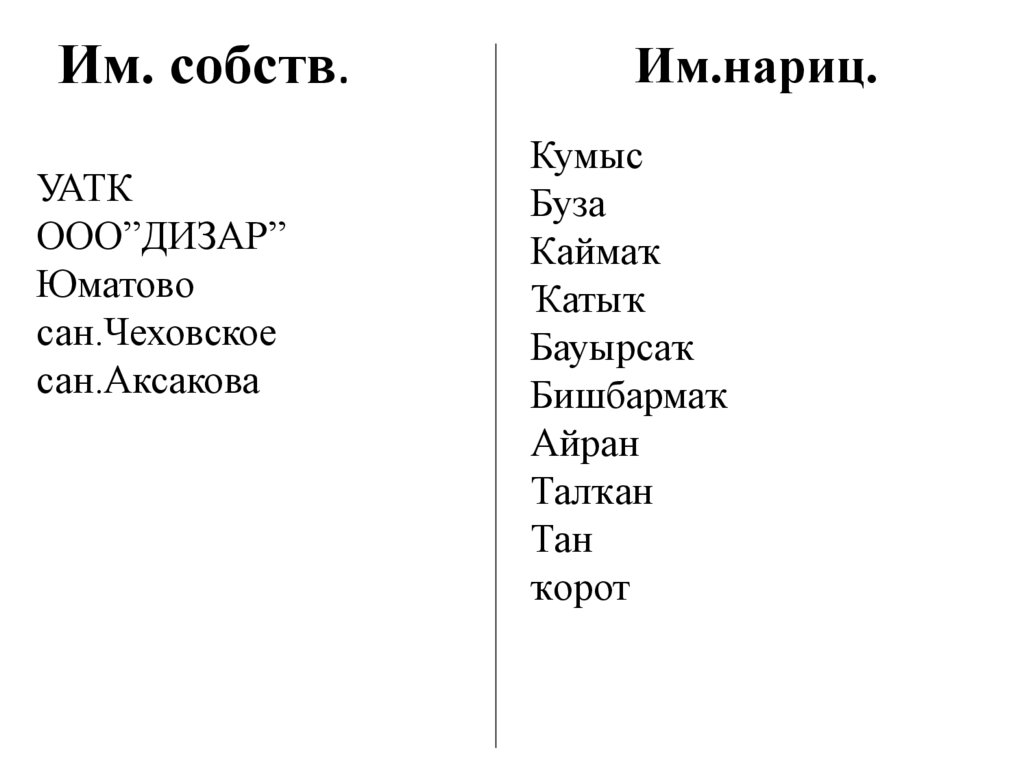 Уртаҡлыҡ исемдәрНарицательные именасуществительные