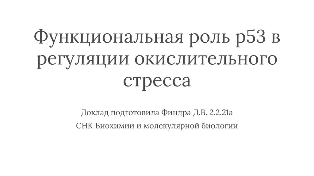 Функциональная роль p53 в регуляции окислительного стресса